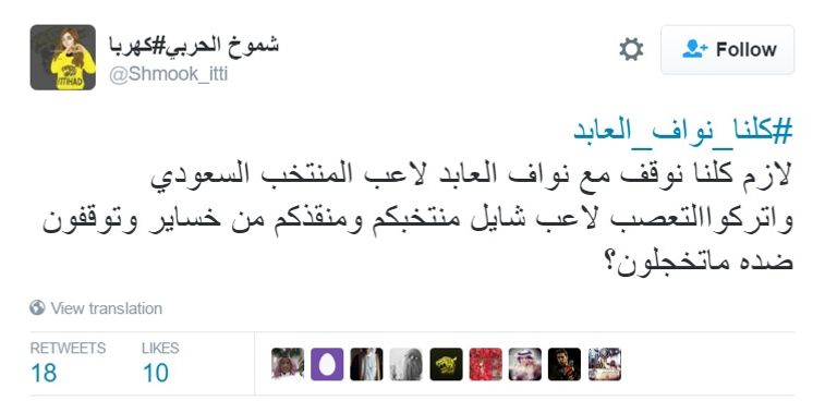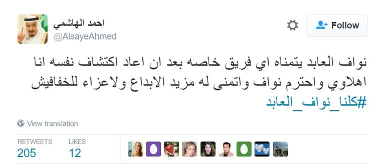على الجانب الاخر ردت الجماهير المحبة للعابد بتدشين هاشتاق بعنوان "كلنا نواف العابد" للرد على تلك الاتهامات.