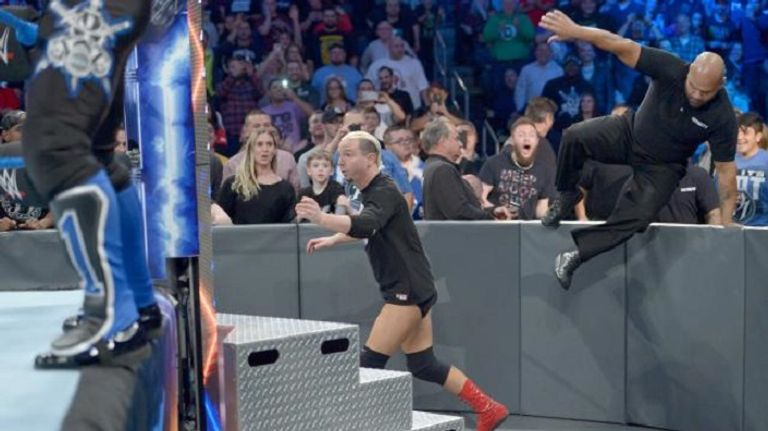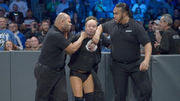 وقام على الفور 4 رجال من الأمن بدخول الساحة لإخراج جيمس إلسورث منها، لكنه راوغهم بالهروب بين صفوف الجماهير، وفي النهاية أمسكوا به، وأثناء خروجه من الساحة عندما كان قريبا من الحلبة ضربه إيه جيه ستايلز.