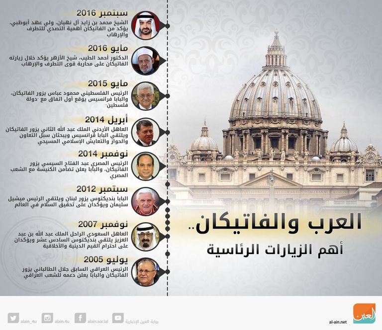 إنفوجراف.. العرب والفاتيكان.. أهم الزيارات الرئاسية