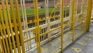 لكن ما لفت انتباه الجماهير هو وجود سياج معدني في مقدمة كل مدرج، وكان قسم المشجعين من ذوي الاحتياجات الخاصة بالكراسي المتحركة محاط بقفص، كما توجد حواجز من البلاستيك الشفاف تفصل قسم مشجعي الفريق الضيف عن قسم مشجعي الفريق المضيف.