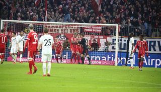 وحول توماس مولر ، لاعب الوسط الهجومي للبايرن، كرة عرضية داخل منطقة الجزاء لزميله المهاجم روبرت ليفاندوفسكي، الذي حول الكرة لداخل الشباك ليعلن الحكم احتساب هدف (ق 25)، قبل أن يتراجع عن القرار بحجة وقوف ليفاندوفسكي في موقف تسلل بعد الالتجاء لتقنية الفيديو المساعد للحكم.