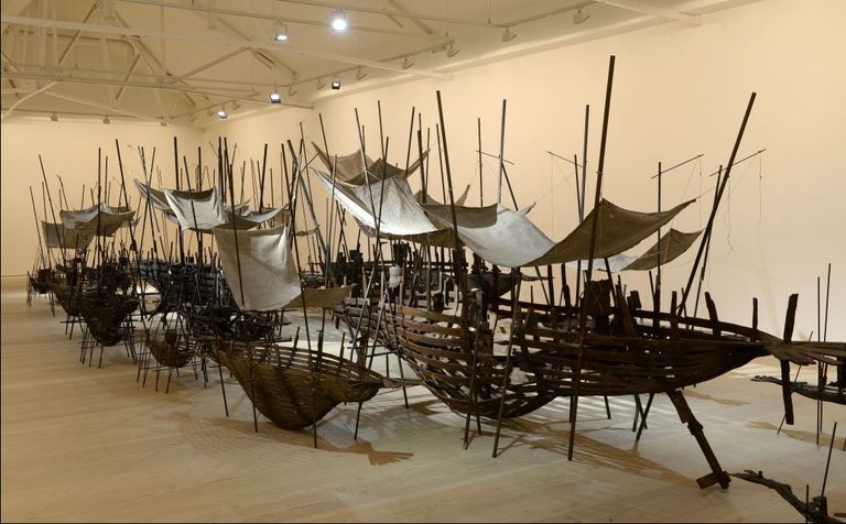 27 مركبا منحوتة من الحديد الصدئ والبرونز المتأكسد، تحت عنوان "السفينة الكبيرة"، عرضها الإسباني "خافيير مسكارو" للتعبير عن عشقه وحنينه لبحر أبوظبي، وقواربه القديمة، وترصد الأعمال المعروضة العلاقة التقليدية الوثيقة بين العاصمة الإماراتية والبحر كمدينة ساحلية، وتابع جمهور فن أبوظبي تلك العلاقة بأبعاد بصرية ونصّية مختلفة تستحضر البحر والتجارة والتاريخ، ويقترن اسم العاصمة الإماراتية في الأذهان بكل ذلك.