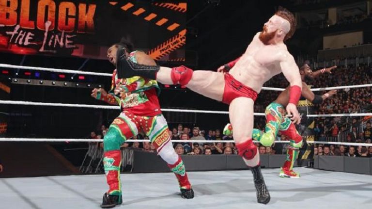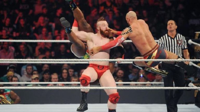 وتناوب شيموس وسيزارو النزول وضرب كوفي كينجستون والقيام بمحاولات لتثبيت أكتافه إلى أن بدل كوفي كينجستون مع زميله بيج إي الذي نزل إلى الحلبة ثائرا وضرب شيموس وحاول تثبيت أكتافه أكثر من مرة بلا جدوى، واستطاع شيموس أن يصمد ويجاري بيج إي في النزال ثم بدل مع سيزارو الذي نزل الحلبة وقام بضرب بيج إي وحاول تثبيت أكتافه لكنه أفلت.