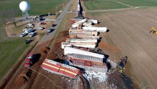 #WATCH: Aerial footage shows multiple vehicles damaged after 31 car CSX train derailment in Trenton Kentucky pic.twitter.com/MgzTjIvj9m