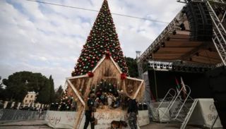 أضيئت شجرة عيد الميلاد، السبت، في ساحة كنيسة المهد بمدينة بيت لحم في الضفة الغربية بحضور عدد من رجال الدين والمسؤولين والدبلوماسيين والمواطنين والسياح من زوار المدينة إيذانا ببدء الاحتفالات بعيد الميلاد.