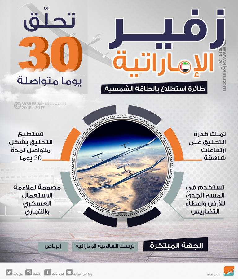 إنفوجراف.. "زفير" طائرة استطلاع إماراتية بالطاقة الشمسية