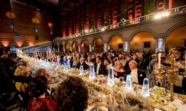 وتعد هذه المرة الأولى منذ عام 1956 التي لا تقام "وليمة نوبل"، وهي تجمع عادة في القاعة الكبرى في مقر بلدية ستوكهولم 1300 مدعو مع الفائزين وأفراد العائلة الملكية السويدية، ويتخلل هذا العشاء الطويل مع تشريفات محددة جدا، إلقاء الفائزين لكلمات.