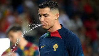 كريستيانو رونالدو المعروف باحترافيته العالية وانضباطه الصارم للحفاظ على لياقته ومستواه، لديه طريقة غير مألوفة أثناء المباريات، حيث لا يشرب الماء بل يكتفي بترطيب فمه ثم يبصقه.