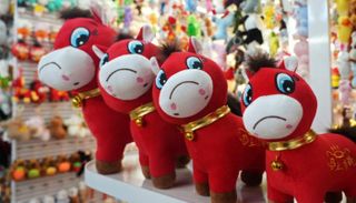 ويبحث المتسوقون عن حصان أحمر مخملي بفم حزين وجرس ذهبي اللون حول العنق وعينين تبدوان وكأنهما تتجنبان النظر إليك مباشرة. وحظيت هذه الدمية بشهرة واسعة على مواقع التواصل الاجتماعي الصينية قبيل عطلة عيد الربيع، التي تتزامن هذا العام مع بداية السنة القمرية الصينية الجديدة التي تعرف باسم "عام الحصان".