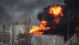 ونشرت وسائل إعلام أوكرانية صورًا على تليغرام تُظهر حريقًا كبيرًا مشتعلاً من بعيد في ظلام الليل.
