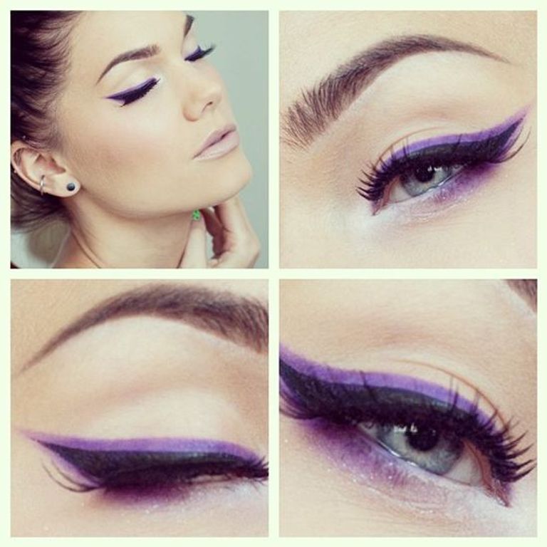 2- استخدام كحل العيون الملون فوق خط الآيلاينر الأسود، مطابقا لاتجاه الخط الأول، ويليق هذا الآيلاينر مع صاحبات الجفن العريض.