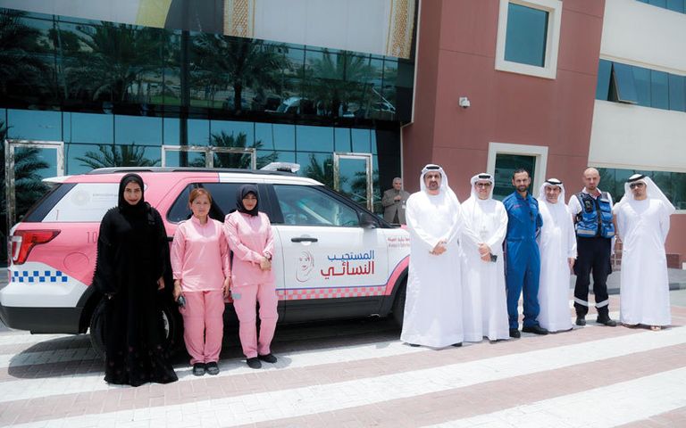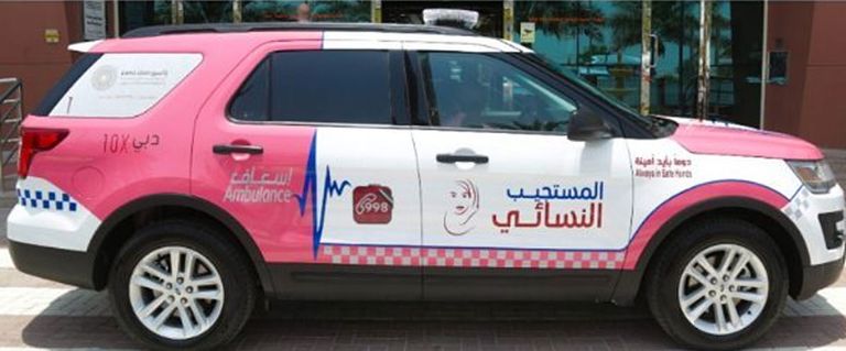 أطلقت مؤسسة دبي لخدمات الإسعاف "المستجيب الوردي"، أول مركبة إسعاف نسائية تختص بعلاج ونقل الإصابات النسائية وحالات الولادة والأطفال.