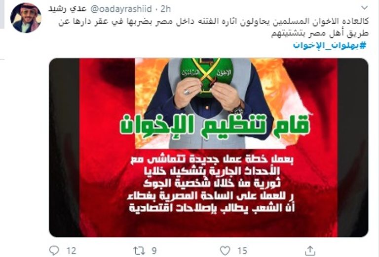 وقال أحد النشطاء ويدعى عدي رشيد: "كالعادة الإخوان يحاولون إثارة الفتنة داخل مصر بضربها في عقر دارها عن طريق أهل مصر بتشتيتهم".
