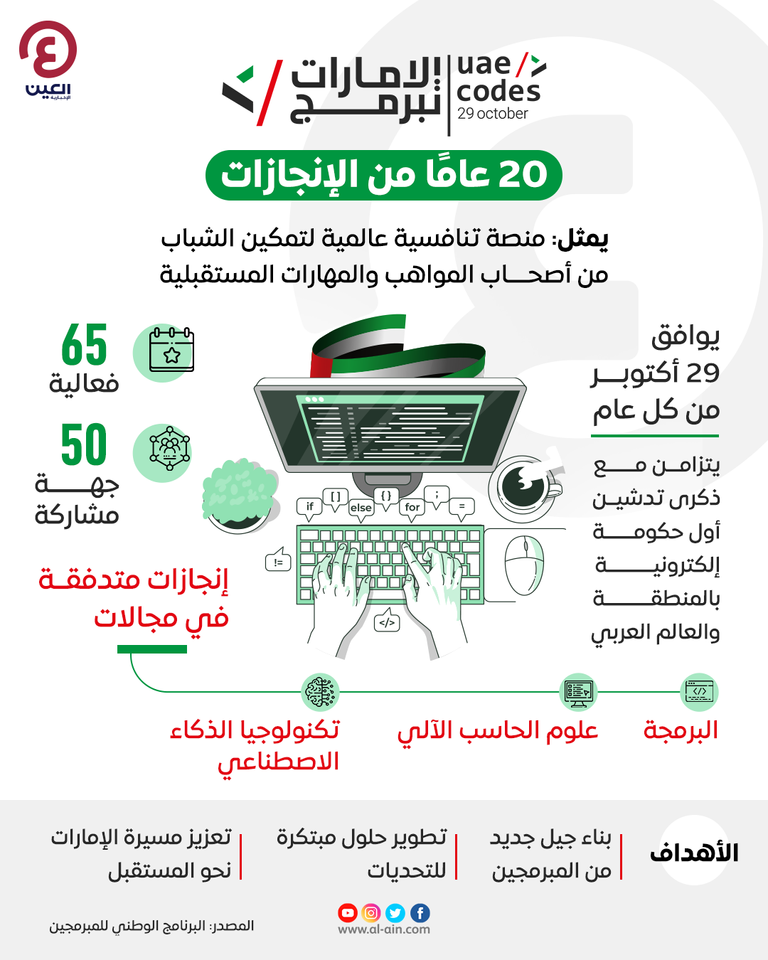 يذكر أن الشيخ محمد بن راشد آل مكتوم نائب رئيس الدولة رئيس مجلس الوزراء حاكم دبي، وجه باعتماد 29 أكتوبر من كل عام يومًا للبرمجة يحمل شعار "الإمارات تبرمج"، للارتقاء بقدرات أصحاب المواهب والعقول الرائدة وتأهيلهم في مجال البرمجة واستخدام التقنيات والتكنولوجيا الحديثة وتوفير أفضل الفرص لهم للمشاركة في تقديم حلول وخدمات مبتكرة لتوظيفها في الارتقاء بمستوى الأداء الرقمي وتعزيز مسيرة التنمية وبناء مستقبل أفضل للأجيال القادمة.