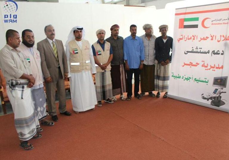 سلمت هيئة الهلال الأحمر الإماراتي صباح السبت، معدات ومستلزمات طبية، دعماً لمستشفى مديرية حجر، ضمن جهودها لتعزيز الخدمات الصحية في حضرموت باليمن، ودعم خدمات القطاع الصحي الذي يعتبر أكثر المجالات تأثراً بالأزمات السابقة.