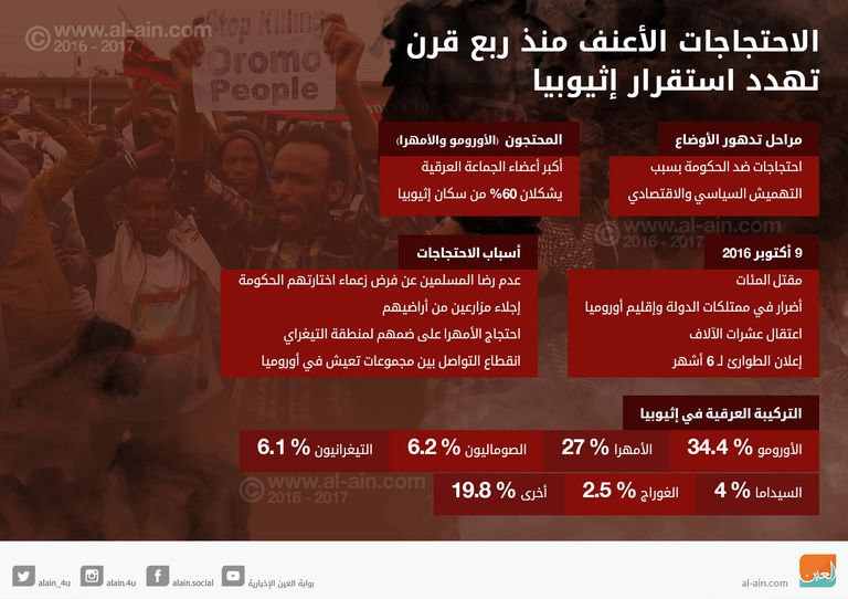 إنفوجراف.. الاحتجاجات الأعنف منذ ربع قرن تهدد استقرار إثيوبيا