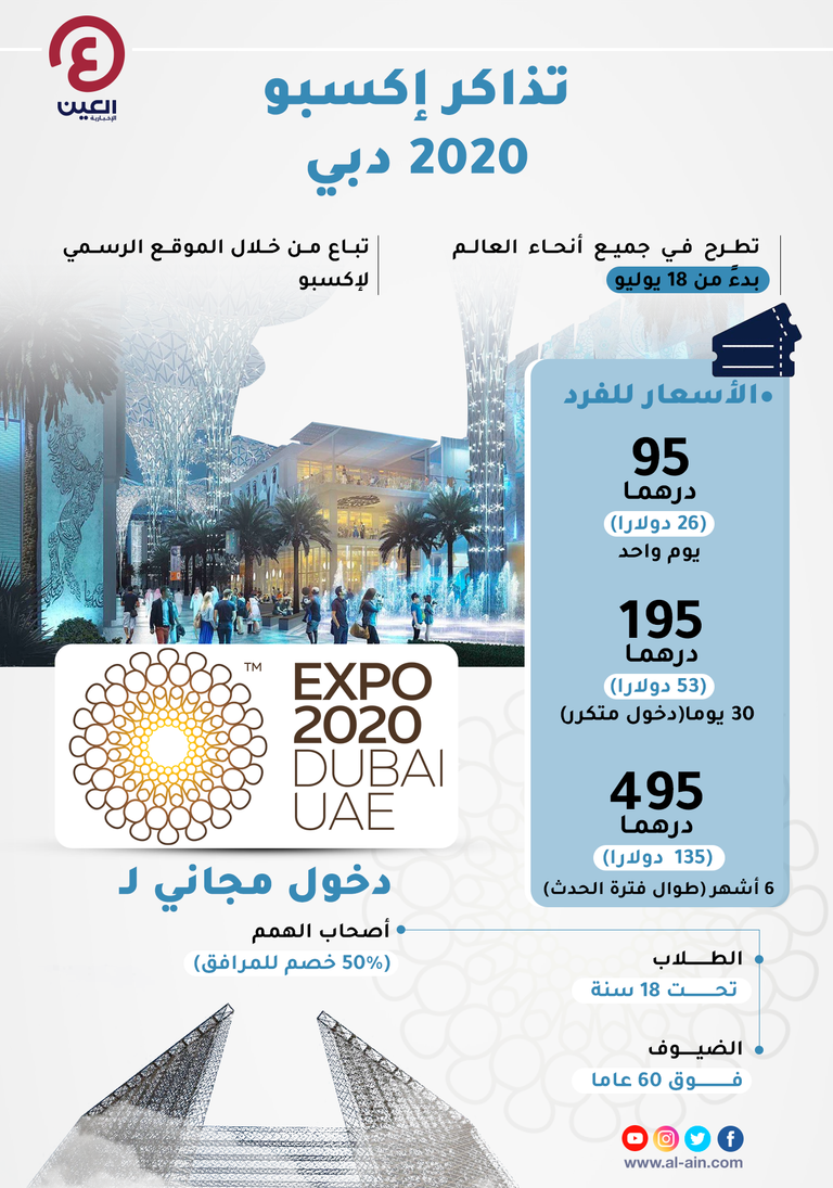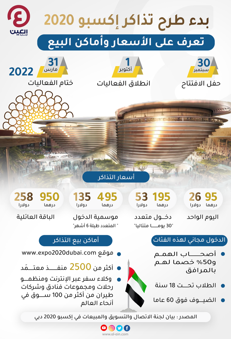أعلن "إكسبو 2020 دبي" عن طرحه تذاكر الحدث العالمي ، الذي ينظم للمرة الأولى في تاريخه في بلد عربي، مع إتاحة فرص بحضور حفل افتتاحه.