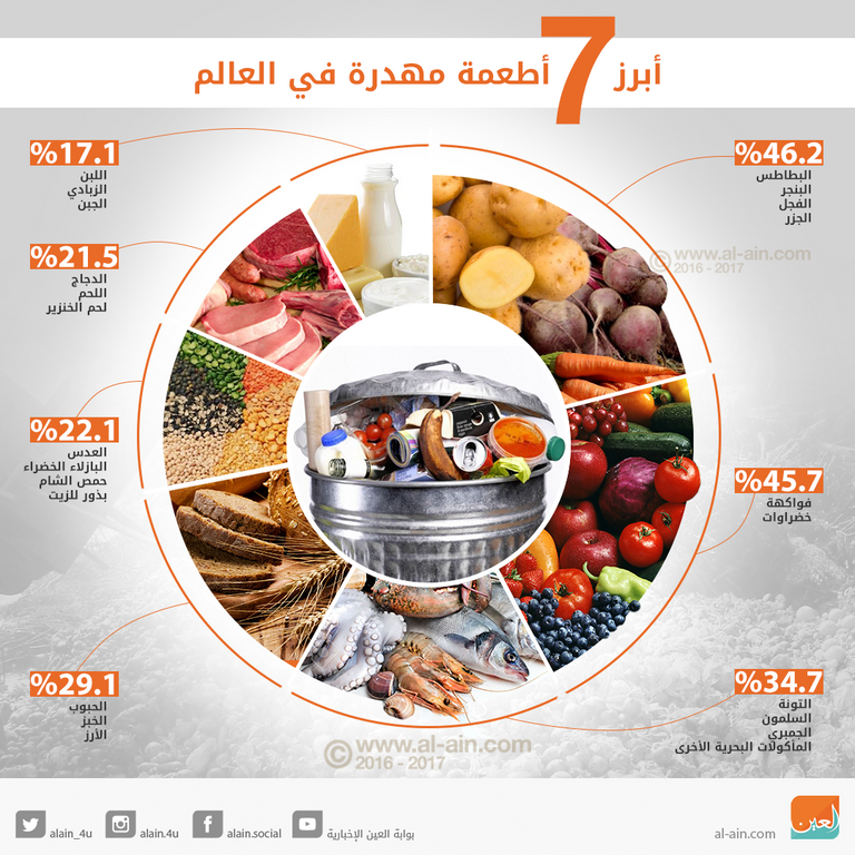 إنفوجراف.. أبرز 7 أطعمة مهدرة حول العالم
