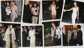 أطلّت أمل كلوني بفستان قصير بدون كُمّين باللون الأخضر الميتاليكي من "فرساتشي" (Versace)، مزين بأحجار الراين ودبابيس ذهبية كبيرة تحمل شعار "ميدوسا". أكملت إطلالتها بكندرة Plexi Pumps من "جيانفيتو روسي" (Gianvito Rossi)، مع مجوهرات البلاتين المرصع بالألماس والزمرّد من مجموعة (Panthere) من "كارتييه" (Cartier)، وخاتم زواجها من "هاري وينستون" (Harry Winston).