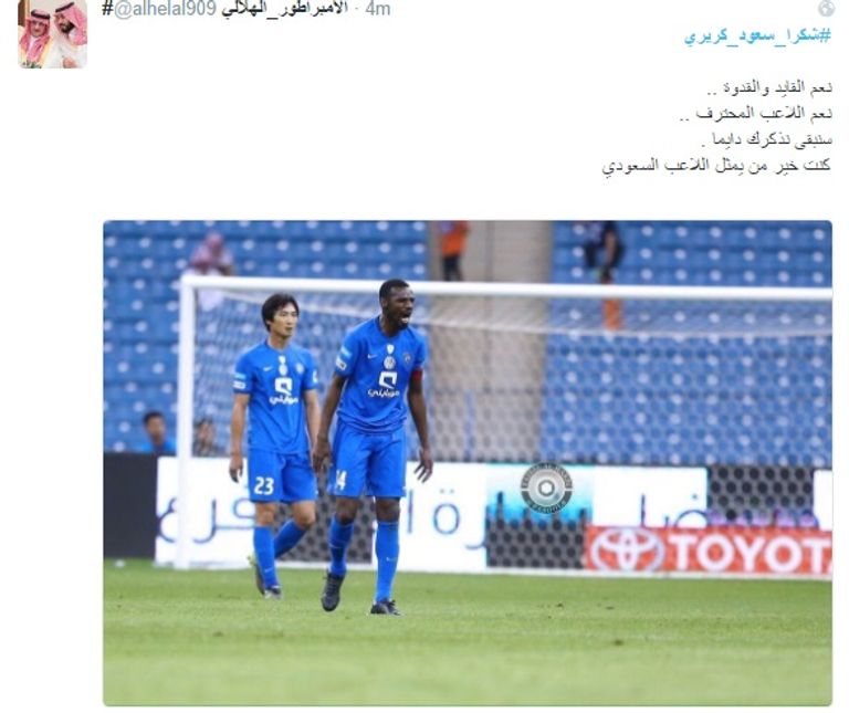 وعلق الإمبراطور الهلالي: "نعم القايد والقدوة.. نعم اللاعب المحترف.. سنبقى نذكرك دايما.. كنت خير من يمثل اللاعب السعودي".