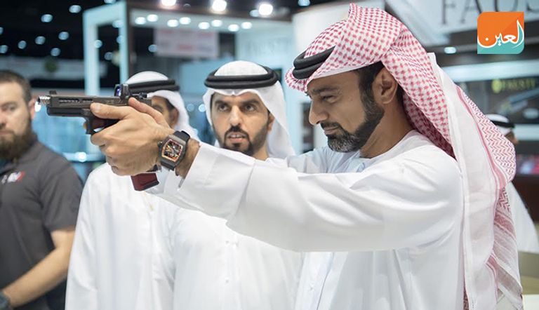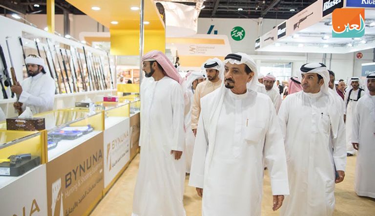حاكم عجمان تفقد أجنحة وأقسام المعرض، التي تقدم آخر المستجدات والتقنيات الحديثة المستخدمة في الصيد والفروسية.