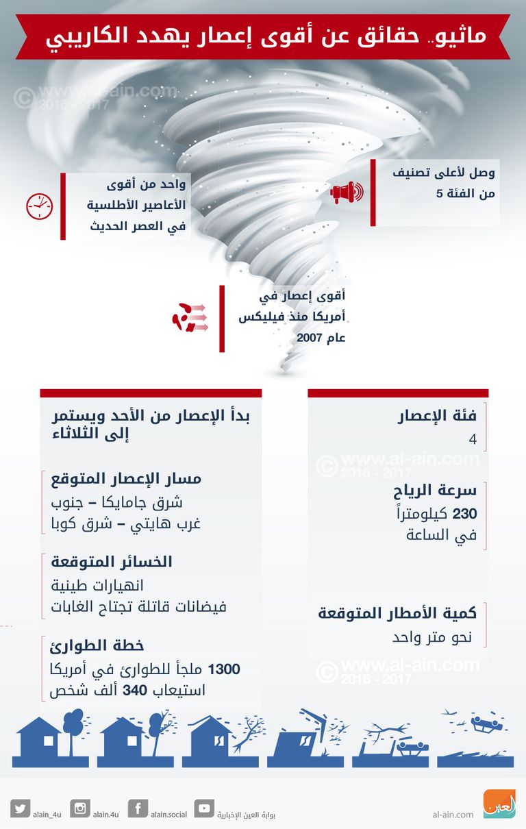إعصار "ماثيو" الهائل الذي يهدد جامايكا وهايتي وكوبا.. تعرف عليه من خلال الإنفوجراف التالي.