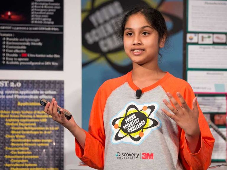 الفتاة الهندوأمريكية "مانسا ميندو" معجزة العلوم البالغة 13 من العمر طالبة في مدرسة "وليام ماسون" الثانوية بولاية "أوهايو".