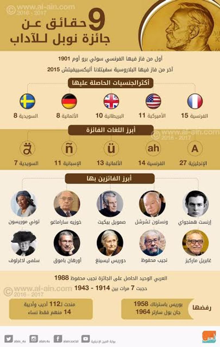 إنفوجراف: جائزة نوبل للآداب تعلن 13 أكتوبر.. هنا 9 حقائق حولها
