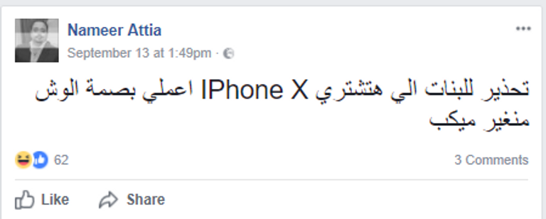 "لا تضعي ميكب" و"لا تنسى قناع النوم".. كانا من أبرز التعليقات الساخرة من بصمة الوجه في "آيفون X"
