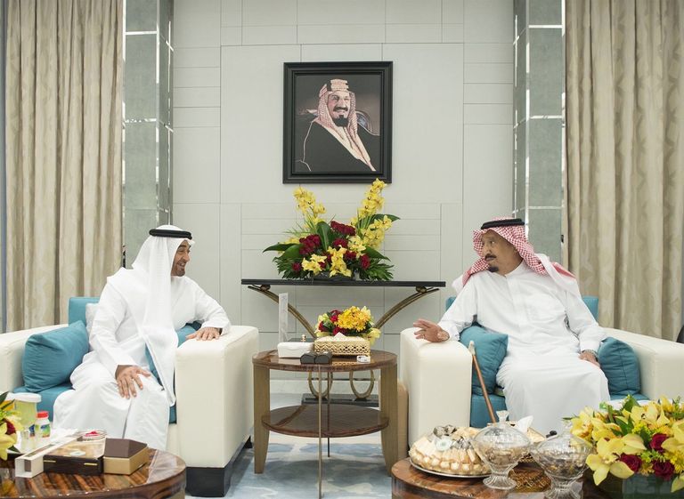 وبحث الملك سلمان والشيخ محمد بن زايد تعزيز العلاقات الأخوية وعدد من القضايا الإقليمية والدولية ذات الاهتمام المشترك