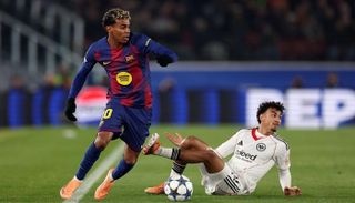 وصنع لامين يامال هدف برشلونة الإسباني الثاني في الفوز 2-1 على آينتراخت فرانكفورت الألماني في الجولة 6 من مرحلة الدوري لدوري أبطال أوروبا، لزميله الفرنسي جوليس كوندي صاحب ثنائية البارسا.