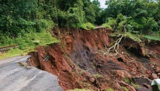 تسببت الانهيارات الأرضية في إغلاق العديد من الطرق السريعة وتعطل الرحلات الجوية، مما أدى إلى تقطع السبل بمئات المسافرين - كثير منهم عادوا بعد الاحتفال بمهرجان داشاين الهندوسي.