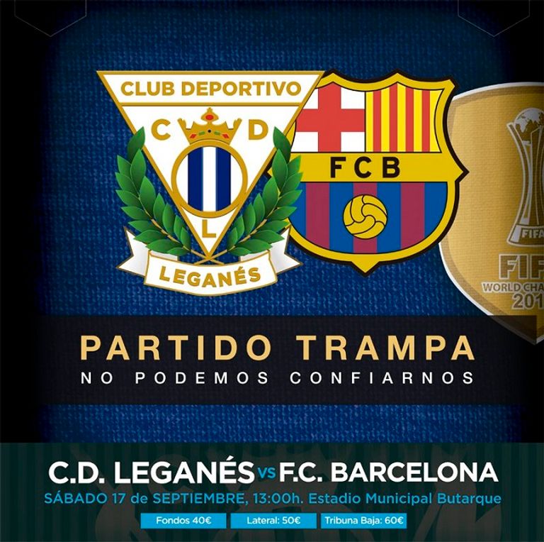واستخدم صاحب الأرض الملصقات الخاصة بالمباراة من أجل السخرية من ضيفه، حيث حوت هذه الملصقات عبارات مثل "المباراة الفخ.. لا يمكننا الاغترار بأنفسنا"، في إشارة من ناحية إلى التوقعات التي ترجح كفة البارسا، الذي يعد واحدا من أكبر الفرق في إسبانيا والعالم، ومن ناحية أخرى إلى خسارته امام ألافيس الصاعد مثله مثل ليجانيس رغم هذه الترشيحات.