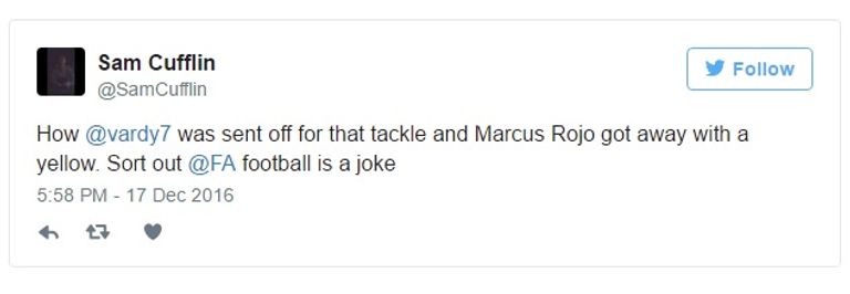 مدافع يونايتد تسبب في إثارة سخط جمهور ليستر سيتي عبر "تويتر" ضد قرار حكم مواجهة ستوك بطرد فاردي، لماذا؟.