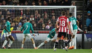 وانتهى الشوط الأول بتقدم برينتفورد على ليفربول بهدفين مقابل هدف.