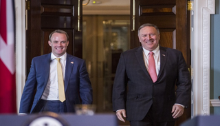 بدوره قال بومبيو بينما كان يقف بجوار راب إن واشنطن تدعم "خيار لندن السيادي" بالانسحاب من الاتحاد الأوروبي، مهما حدث.
