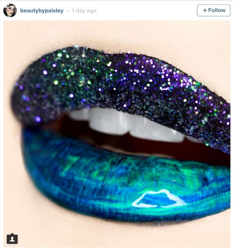بعد الشعر بألوان قوس قزح والشفاه المرصعة بالكرستالات وصلت الموضة إلى إضاءة الشفاه وبروزها لعام 2017 والفكرة مستوحاة من الحصان وحيد القرن الملون.