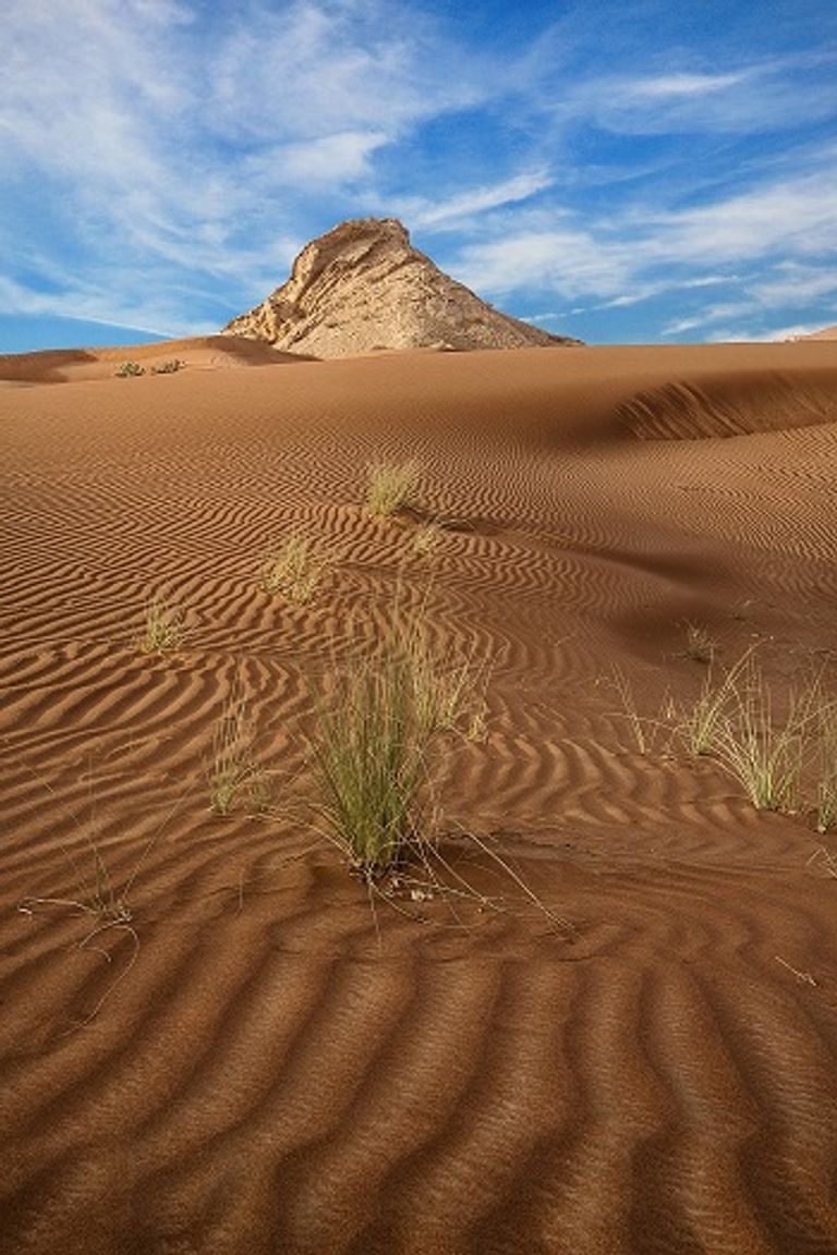 أما "صخرة الجمل" الجميلة، كأسطورة نحتتها الطبيعة بالماء، تطلّ بصلابة وشموخ، وتحيط بها الكثبان الرملية الحمراء، لتخلق بذلك لوحةً فنية ساحرة وسط الصحراء تأسر الناظرين إليها، فهي صخرة عملاقة شكّلتها عوامل النحتّ والتعرية، وصقلتها يد الريح، حتى باتت تشبه "الجمل"، تشير بجماليتها الفريدة وشموخها المبهر إلى أن المنطقة كانت مغمورة بالمياه منذ آلاف السنوات، فتلاشت لتتحول المنطقة إلى صحراء مذهلة.