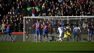 بسبب ذلك، تمكن ماتيتا من إعادة تنفيذ ركلة الجزاء، بعدما أكد حكم تقنية الفيديو أن اللمسة الأولى للكرة كانت غير مقصودة، ليعيد بذلك تقدم بالاس أمام يونايتد 1-0 قبل نهاية الشوط الأول.