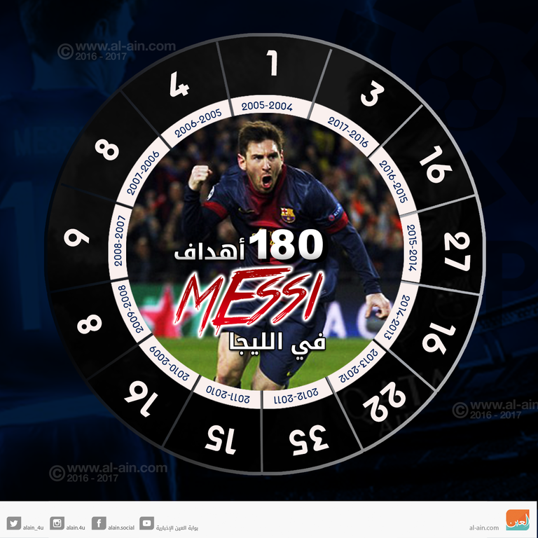 ليونيل ميسي، نجم فريق برشلونة، أكثر لاعب يسجل أهدافًا على أرضه في مسابقة الدوري الإسباني، بعدما سجل الهدف رقم 180 .. كيف جاءت أهدافه ؟