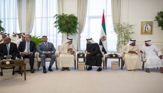 ورحّب الشيخ محمد بن زايد آل نهيان بضيوف الإمارات، خلال اللقاء الذي جرى بقصر البحر في أبوظبي، بحضور الفريق الشيخ سيف بن زايد آل نهيان نائب رئيس مجلس الوزراء وزير الداخلية الإماراتي.