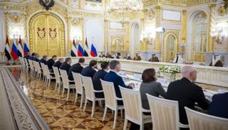 وأقام الرئيس الروسي مأدبة تكريما للشيخ محمد بن زايد آل نهيان رئيس دولة الإمارات والوفد المرافق.