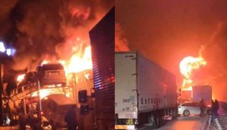 وتداولت وسائل إعلام ومنصات التواصل الاجتماعي مقاطع فيديو وصورًا تُظهر ألسنة اللهب والدخان الكثيف المتصاعد من بين المركبات المحترقة.