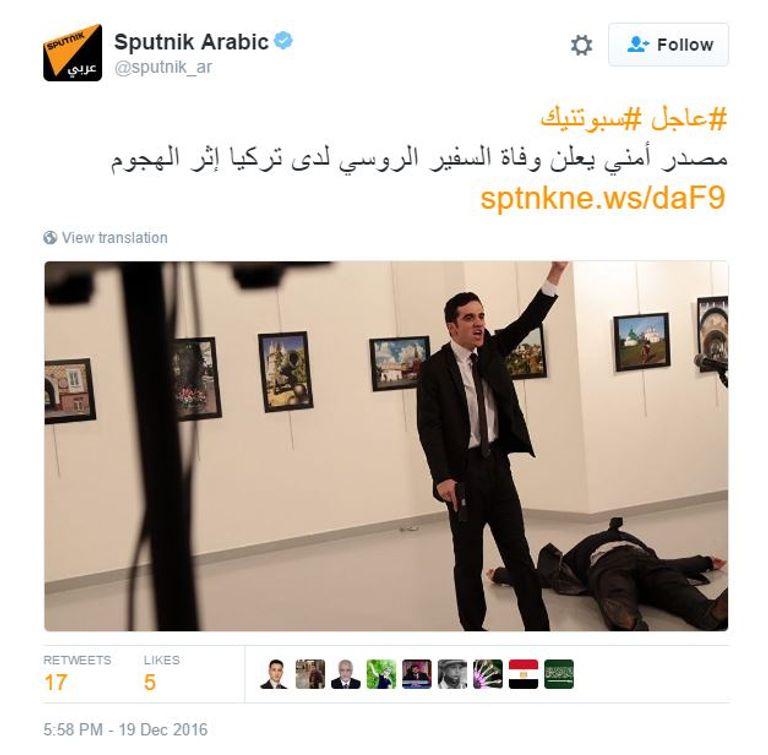 اغتال مسلحٌ السفير الروسي في أنقرة، أندريه كارلوف، مساء الإثنين، خلال حضور الأخير معرضا فنيا في العاصمة التركية.