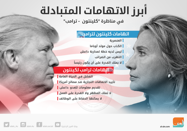 إنفوجراف.. أبرز الاتهامات المتبادلة في مناظرة "كلينتون - ترامب"