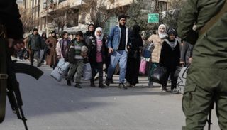 وخرج الآلاف من السكان بينهم نساء وأطفال ومسنون من الحيين، بعضهم سيرا على الأقدام وآخرون في سيارات وشاحنات صغيرة، وفق ما شاهد مراسلو "فرانس برس" في المدينة.