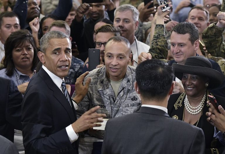 بالصور.. أوباما لترامب: مكافحة الإرهاب ليست بـ"الوعود الكاذبة"