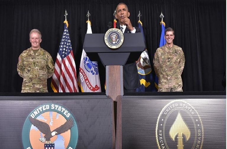 ومن قاعدة ماكديل الجوية في فلوريدا، التي تعد مقر قيادة القوات الخاصة والقيادة المركزية للقوات الأمريكية المنتشرة في الشرق الأوسط، دافع أوباما عن أساليبه في الحرب ضد إرهابيي تنظيم داعش في العراق وسوريا والتي تعتمد على عدم إرسال قوات برية ولكن تقديم الدعم لقوات الأمن المحلية وشن حملة قصف جوي بدعم المجتمع الدولي.