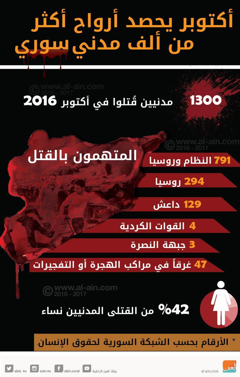 إنفوجراف.. أكتوبر يحصد أرواح أكثر من ألف مدني سوري