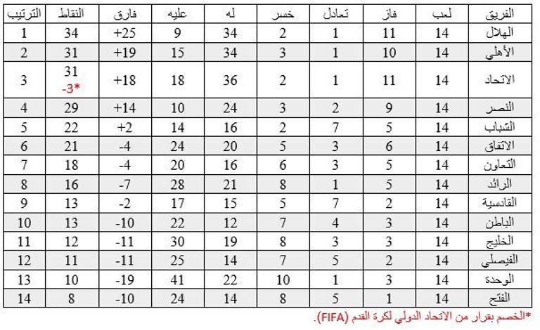 *صورة من جدول ترتيب الدوري السعودي بعد خصم نقاط الاتحاد